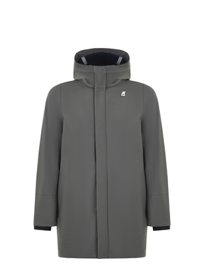 Giaccone K-Way in nylon stretch Verde militare. Foderato in pile Blu. Cuciture termonastrate. Cappuccio con coulisse. Due tasche frontali con zip. Taschino interno con zip. Dettaglio colorato lungo le zip. Polsi in maglia elastica. Chiusura con zip frontale. Logo applicato sul petto. Misura in foto S92% poliestere, 8% elastene