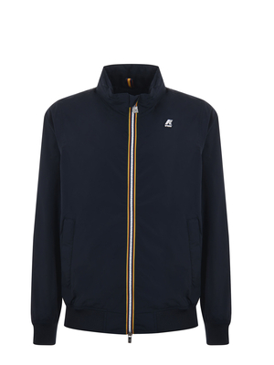 Giubbino K-Way in nylon stretch Blu scuro. Impermeabile. Collo alto con cappuccio inserito all'interno. Chiusura con zip doppio cursore. Tasche con zip. Tasche interne. Polsi e fondo a costine. Fitting slim. Logo frontale in gomma. Foderato. Misura in foto M95% nylon, 5% elasene