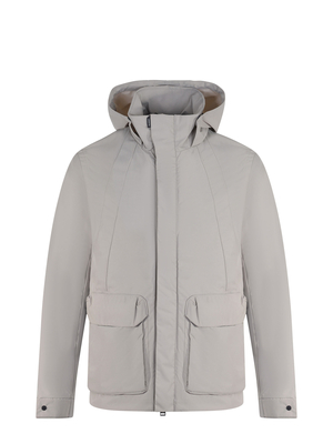 Giubbino Krakatau "ELMAG" in nylon Ghiaccio. Maniche lunghe. Polsini regolabili. Cappuccio che si ripiega nel collo alto. Chiusura frontale con zip doppio cursore e bottoni automatici nascoti da patta. Tasca frontale sul petto con chiusura magnetica. Doppie tasche laterali sul davanti con interno in pile. Due tasche sul petto con cerniera. Giacca interna staccabile che può essere indossata come capo separato. Interno trapuntato.100% nylon