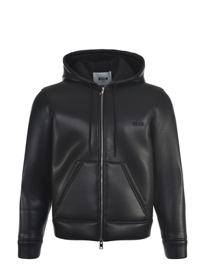Giubbino Msgm in similpelle effetto scuba Nero. Cappuccio con coulisse. Maniche lunghe con polsino. Chiusura frontale con zip doppio cursore. Tasche a marsupio. Ricamo logo sul petto. 35% poliestere 31% poliuretano 31% cotone 3% elastene