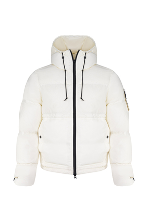 Giubbino Stone Island " Matt Ripstop Cordura" realizzato in nylon di colore Avorio. Imbottito in piuma. Cappuccio imbottito con coulisse sagomata. Tasche verticali con bottone automatico. Tasca interna con logo Stone Island Compass ricamato e bottone. Badge Stone Island sulla manica sinistra. Polsini con bottone automatico che chiude nella manica la pattina triangolare di protezione delle mani. Listino regolabile con bottoni automatici. Orlo con coulisse. Chiusura con zip a doppio cursore. Antigoccia.100% poliammide