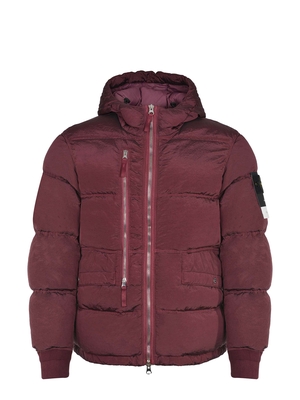 Giubbino Stone Island realizzato in poliammide di colore Borgogna. Cappuccio imbottito con coulisse. Maniche lunghe. Polsini a coste elasticizzati. Tasca con zip verticale sul petto. Chiusura con zip a doppio cursore. Tasche laterali con bottone automatico. Tasca interna con bottone. Badge Stone Island sulla manica sinistra. Fondo con coulisse. 100% poliammide