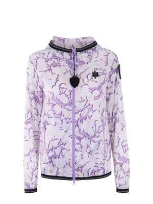 Giubbotto Blauer in nylon leggero Bianco/ Glicine. Fantasia astratta all over. Cappuccio con bordo elastico. tasche con zip. Chiusura con zip doppio cursore. Polsi e fondo elasticizzati. Patch logo con strass. Sfoderato. Misura in foto XS100% poliestere