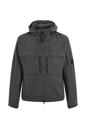 Giubbotto C.P. Company in nylon taffetà Verde militare. Effetto cangiante. Cappuccio con coulisse. Tasche con zip e tasconi alti con pattina. Tasca interna. Tasca sulla manica sinistra con zip e lente. Polsi con bottone. Chiusura con zip doppio cursore. Fodera a rete. Misura in foto 46100% poliestere