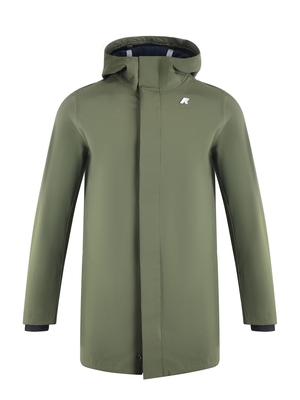 Giubbotto K-Way in nylon a 3 strati Verde militare. Foderato con polarfleece (pile). Cappuccio con coulisse. Tasche con zip. Tasche interne. Chiusura con zip doppio cursore e bottoni automatici. Slim fit. Grado di calore leggero. Misura in foto S98% poliestere, 8% poliuretano Interno: 100% poliammidica