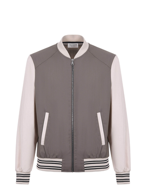 Giubbotto Yes London in fresco lana Tortora. Maniche in tela di cotone Beige. Colletto, polsi e fondo in maglia a costine. Tasche sui fianchi. Chiusura con zip. Sfoderato. Misura in foto 4655% poliestere, 43% lana, 2% elastene 49% cotone, 39% poliestere, 12% poliammide