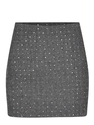 Gonna A Paper Kid realizzata in misto lana di colore Grigio antracite. Strass di colore Argento all-over. Chisuura con zip sul retro.70% poliestere 15% lana 15% viscosa Made in Italy