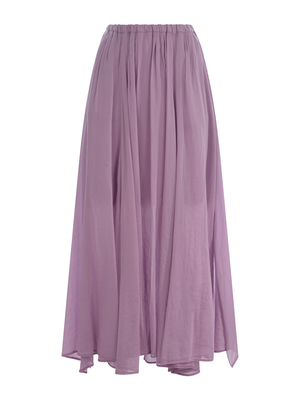 Gonna Forte Forte in voile misto cotone e seta di colore Lilla. Elastico in vita. Elastico in vita. Tasche laterali. Linea morbida. 70% Cotone, 30% Seta Made in Italy