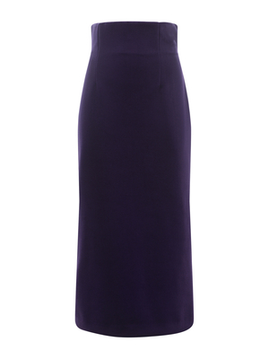 Gonna longuette Philosophy realizzata in velluto stretch di colore Viola. Vita alta. Linea dritta. Chiusura con zip, invisibile sul retro. Spacco centrale sul retro. Slim fit. 7% Elastan, 93% Poliestere Made in Italy