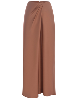 Gonna lunga Pinko " Conversione" realizzata in raso lucido di colore Bronzo. Linea scivolrata. Silhouette incrociata. Spacco centrale. Chiusura con zip invisibile sul retro.100% Poliestere Made in Italy