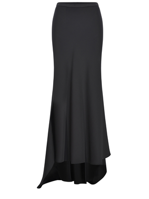 Gonna Philosophy in raso Nero. Lunga a vita alta. Silhouette più lunga sul retro. Chiusura con zip sul lato sinistro.100% poliestere