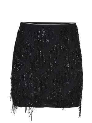Gonna Rotate realizzata in poliestere di colore Nero.Chiusura laterale con zip monogram in metallo Argento.Paillettes ricamate e rifinita con frange di perline all-over.100% poliestere