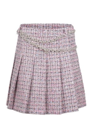 Gonna Self-Portrait realizzata in misto lana di colore Rosa. Inserti di colore Nero e Celeste. Plissettata. Passanti per cintura. Cinturino catena di strass removibile. Chiusura con zip laterale. Foderata.91% poliestere 8% lana 1% fibre metalliche
