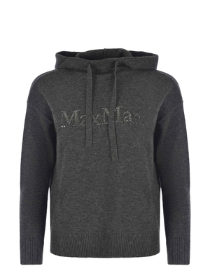 Felpa 'S Max Mara " Gorizia" realizzata in filato di lana e cashmere di colore Grigio Medio. Cappuccio con coulisse. Lettering logo " Max Mara" con strass termosaldati. Maniche lunghe. Giromanica sceso. Polsi e fondo a costine.80% Lana, 20% Cashmere Made in Italy
