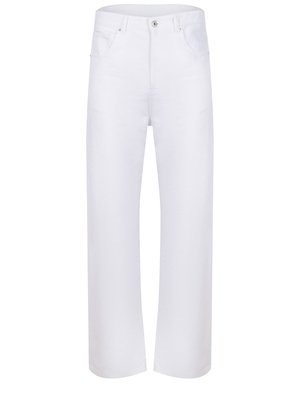 Jeans Amaranto realizzato in denim di colore Bianco.Chiusura con bottone e zip.Passanti per cintura in vita.Cinque tasche. Etichetta logo sul retro a contrasto.100% cotoneMade in Italy