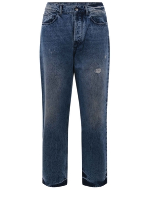 Jeans BARROW in denim effetto distressed. Aree sabbiate e scolorite. Aree con rotture. Vita alta. Gamba ampia. 5 tasche. Chiusura con bottoni. Pinces sul pannello posteriore.Misura in foto 31100% cotone