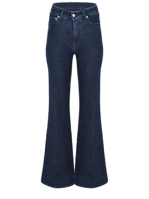 Jeans Cycle realizzato in denim di colore Blu profondo. Chiusura con zip e bottoni. Cinque tasche. Passanti per cintura in vita. Monogram logo applicato sul retro della tasca in metallo Argento. Flare Fit.57% cootne 16% poliesilene 14% cotone riciclato 11% lyocell 2% elastene Made in Italy