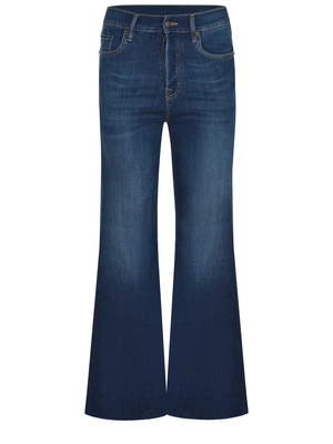 Jeans Cycle realizzato in denim di colore Blu scuro. Chiusura con zip e bottoni. Cinque tasche. Passanti per cintura in vita. Monogram logo applicato sul retro della tasca in metallo Argento. Flare Fit.91.5% cotone 7% poliestere 1.5% elastene Made in Italy