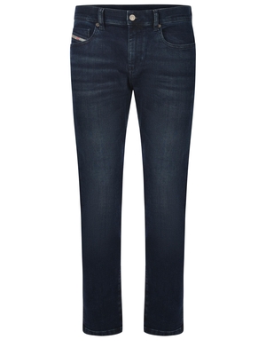 Jeans Diesel realizzato in denim di colore Blu. Effetto stone wash. Passanti per cintura. Cinque tasche. Lettering logo inciso sulla tasca. Chiusura con zip e bottone. Etichetta logo applicata sul retro. Logo "D" di colore Rosso sulla tasca sul retro. 98% Cotone 2% Elastan