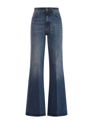 Jeans Dondup " Amber" in denim di colore Azzurro. Effetto stone wash. Vita regolare. Passanti per cintura. Cinque tasche. Chiusura zip e bottone. Gambra ampia. Etichetta logo in pelle Nero sul retro. Logo "D" in metallo applicata sulla tasca posteriore. Wide leg fit. 100% Cotone Made in Italy