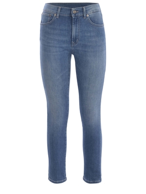 Jeans Dondup " Dalia" realizzati in denim stretch di colore Azzurro. Effetto stone wash. Vita regolare. Cinque tasche. Chiusura con bottone e zip. Gamba dritta. Etichetta logo in pelle applicata sul retro. Logo "D" in metallo applicato sulla tasca posteriore. Cuciture a contrasto. Slim fit.92% Cotone, 6% Elastomultiester, 2% Elastan Made in Italy
