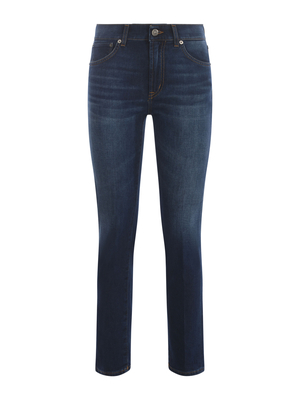 Jeans Dondup " Dalia" in denim stretch di cotone stretch Azzurro. Effetto stone wash. Vita alta. Passanti per cintura. Cinque tasche. Gamba dritta. Etichetta logo in pelle Nero sul retro. Logo "D" in metallo applicato sulla tasca posteriore. Slim fit. 92% Cotone, 6% Elastomultiester, 2% Elastan Made in Italy