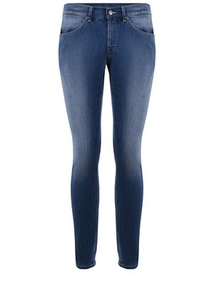 Jeans Dondup " George" in denim stretch Blu. Scoloriture all over. Passanti per cintura. Cinque tasche. Chiusura con bottoni. Logo "D" in metallo applicato sulla tasca sul retro. Vita bassa. Skinny fit. 92% Cotone, 6% Elastomultiestere, 2% Elastan Made in Italy ...