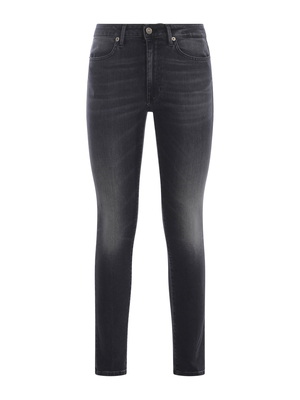 Jeans Dondup " Iris" in denim stretch di colore Nero. Effetto stone wash. Passanti per cintura. Cinque tasche. Chiusura con zip e bottone. Patch logo " Dondup" in pelle Nero applicato sul retro. Logo "D" in metallo sul retro.57% Cotone, 37% Modal, 4% Elastomultiester, 2% Elastan Made in Italy