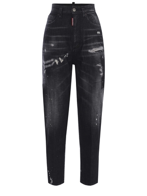 Jeans Dsquared 2 "80'S" realizzato in denim di colore Nero. Effetto stone wash. Rotture e rattoppi. Schizzi di pittura a contrasto all-over. Vita alta. Cinque tasche. Chiusura con bottone e zip. Patch logo a contrasto applicato davanti. Etichetta logo applicata sul retro.98% Cotone, 2% Elastan