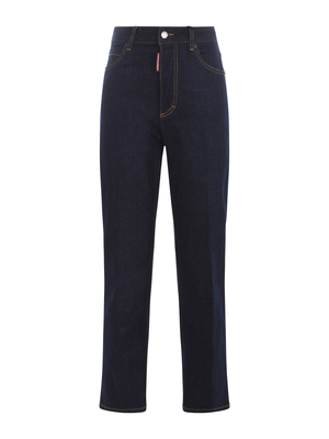 Jeans Dsquared 2 " Boston" realizzato in denim stretch di colore Blu scuro. Passanti per cintura. Cinque tasche. Chiusura con bottoni, nascosti. Patch logo a contrasto applicato davanti. Gamba dritta. Etichetta logo in pelle di colore Nero applicata sul retro. Regular fit. 99% Cotone, 1% Elastan