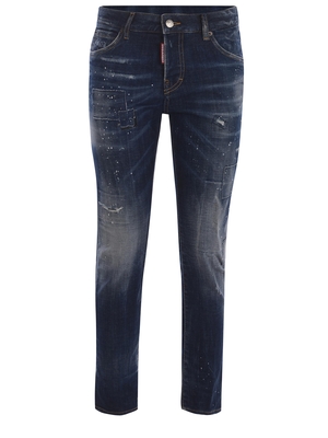 Jeans Dsquared 2 " Cool Girl" realizzato in denim di colore Blu. Effetto stone wash. Microrotture e rattoppi. Schizzi di pittura a contrasto all-over. Passanti per cintura. Cinque tasche. Chiusura con bottoni nascosti. Patch logo a contrasto applicato davanti. Etichetta logo applicata sul retro.98% Cotone, 2% Elastan Slim fit.