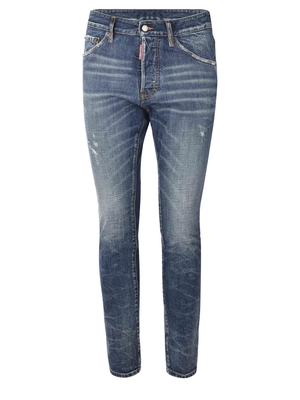Jeans Dsquared 2 " Cool Guy" realizzato in denim di cotone di colore Blu. Effetto stone wash. Microrotture. Passanti per cintura. Cinque tasche. Chiusura con bottoni nascosti. Patch logo a contrasto applicato davanti. Etichetta con lettering logo applicata sul retro. Cool Guy fit.100% Cotone Made in Italy
