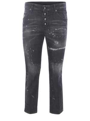 Jeans Dsquared 2 in cotone strech Nero. Aree volutamente scolorite. Micro rotture. Cinque tasche. Passanti per cintura. Chiusura con bottoni con logo " Icon" a contrasto Bianco. Passanti per cintura. Etichetta logo tono su tono sul retro. Vestibilità Cool Girl Cropped Jean. 98% Cotone 2% Elastan