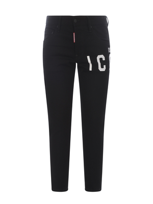 Jeans Dsquared 2 " Icon" in denim di cotone Nero. Passanti per cintura. Cinque tasche. Chiusura con bottoni. Patch logo a contrasto applicato davanti. Logo " Dsquared 2 Icon" a contrasto Bianco. Etichetta logo in pelle Nero sul retro. Vestibilità Skater Jean.98% Cotone, 2% Elastan Made in Italy