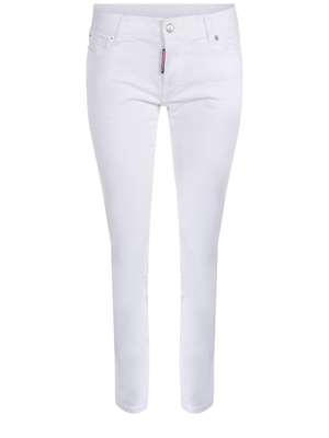 Jeans Dsquared2 "Jennifer" realizzato in denim stretch di colore Bianco. Cinque tasche. Chiusura con bottoni nascosti. Patch logo a contrasto applicata sulla chiusura. Etichetta logo applicata sul retro in pelle. Skinny fit.98% cotone 2%elastane