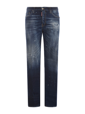 Jeans Dsquared 2 " Roadie" in denim di colore Blu. Lavaggio used. Dettaglio schizzi di pittura a contrasto all-over. Micorotture e rattoppi. Passanti per ciintura. Cinque tasche. Patch logo a contrasto applicato davanti. Chiusura con bottoni nascosti. Etichetta logo a contrasto applicato sul retro. Logo " Dean& Dan" a contrasto sulle tasche sul retro. Roadie Fit.99% Cotone, 1% Elastan Made in Italy