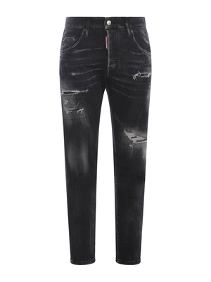 Jeans Dsquared 2 " Skater" in denim Nero. Effetto used. Microrotture e rattoppi. Passanti per cintura. Cinque tasche. Patch logo a contrasto applicato davanti. Chiusura con bottoni nascosti. Etichetta logo in pelle applicata sul retro.92% Cotone, 6% Elastomultiester, 2% Elastan Made in Romania