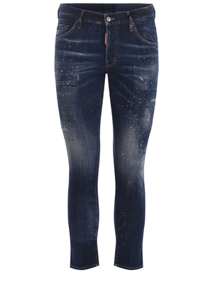 Jeans Dsquared 2 " Skater" realizzati in denim Blu. Effetto stone wash. Lavaggio used. Rattoppi. Schizzi di pittura a contrasto Bianco all-over. Passanti per cintura. Chiusura con bottoni nascosti. Patch logo a contrasto applicato davanti. Etichetta logo " Dsquared 2" in pelle a contrasto applicata sul retro. Vestibilità Skater 98% Cotone, 2% Elastan