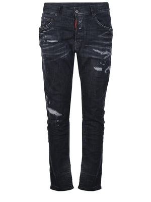 Jeans Dsquared 2 " Skater" realizzato in denim stretch di colore Nero. Effetto stone wash. Passanti per cintura. Cinque tasche. Strappi sul davanti e sul retro. Chiusura con bottoni nascosti. Patch logo a contrasto applicato davanti. Etichetta logo in pelle di colore Marrone sul retro. Skater fit.92% cotone 6% elastomultiestere 2% elastene Made in Italy
