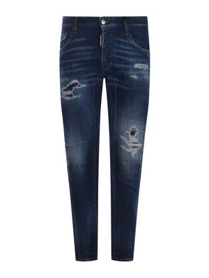 Jeans Dsquared 2 " Tidy Biker" in denim stretch di colore Blu. Effetto stone wash. Dettagli distroyed. Passanti per cintura. Chiusura con bottoni nascosti. Patch logo a contrasto davanti. Cinque tasche. Etichetta logo "1964 Dsquared" in pelle. Patch logo "DSQ2" a contrasto sul retro. 98% Cotone, 2% Elastan Made in Italy