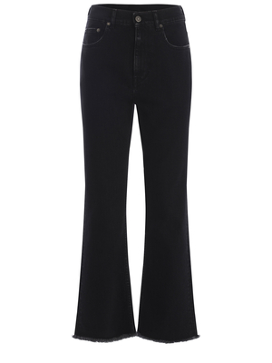 Jeans Golden Goose realizzati in denim di colore Nero. Passanti per cintura. Cinque tasche. Chiusura con bottone e zip. Doppia stellina applicata sul retro. Patch Bianco, logo "G" a contrasto Rosso. Designer flare. Fondo taglio vivo.98% Cotone, 2% Elastan Made in Italy