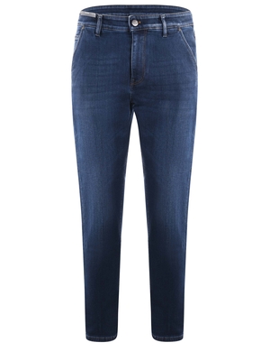 Jeans PT in denim stretch. Tasche america. Chiusura con zip e bottone. Etichetta logo sul retro. Passanti per cintura. Tapered fit.Misura in foto 3281% cotone, 11% lyocell, 6% elastomultiestere, 2% elastene