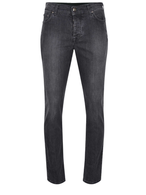Jeans Sartorio realizzato in denim di colore Grigio antracite. Stone wash. Chiusura con bottoni. Passanti per cintura. Cinque tasche. Etichetta logo a contrasto con lettering logo in rilievo in metallo Argento. Slim Fit.98% cotone 2% elastene Made in Italy