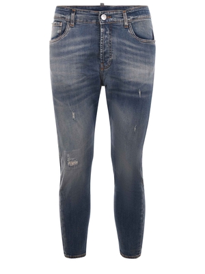 Jeans Yes London in denim stretch sabbiato. Effetto stone wash. Aree volutamente scolorite con rotture e rattoppi. Passanti per cintura. Chiusura con bottoni. Lunghezza alla caviglia. Patch logo sulla tasca sul retro.98%Cotone, 2%Elastan