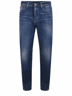 Jeans Yes London realizzato in denim di colore Blu Scuro. Dettagli distroyed. Effetto stone wash. Microrotture e rattoppi. Passanti per cintura. Chiusura con bottoni. Cinque tasche. Patch logo in metallo applicato sulla tasca posteriore. Cool Fit.98% Cotone, 2% Elastan Made in Italy ...
