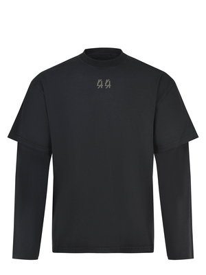 Maglia 44 Label Group realizzata in cotone di colore Nero.Girocollo a costine.Maniche lunghe. Monogram logo a contrasto sul petto.Maxi stampa logo sul retro a contrasto.100% cotone