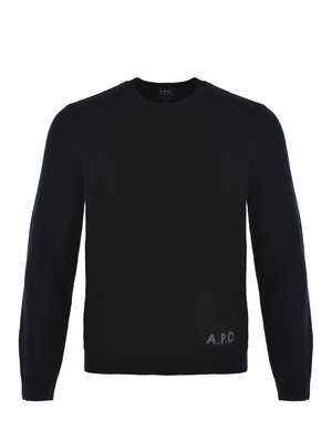 Maglia A.P.C. " Edward" realizzato in morbida lana vergine di colore Nero. Girocollo a costine. Maniche lunghe. Lettering logo "A.P.C." a contrasto Celeste, in basso a sinistra. Taglio dritto. 100% Lana Vergine