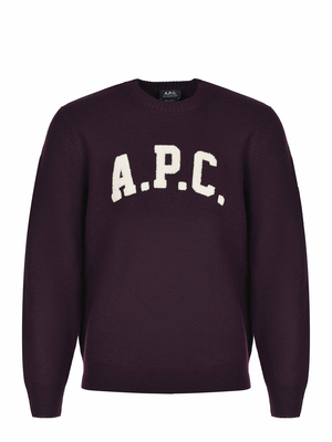 Maglia A.P.C. "Jay" realizzato in morbida lana vergine di colore Prugna. Girocollo a costine.Maniche lunghe. Lettering logo "A.P.C." a contrasto Bianco, sul pettoTaglio dritto.100% Lana Vergine