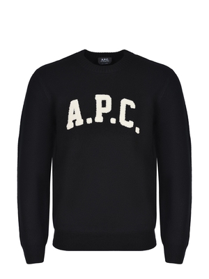Maglia A.P.C " Jay" realizzata in lana di colore Nero. Girocollo a costine. Maniche lunghe. Lettering logo A.P.C a contrasto sul petto.100% lana vergine