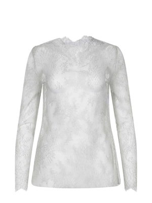 Maglia Alberta Ferretti realizzato in pizzo di colore Salvia.Trasparente. Interamente in pizzo.Scollo a barca.Maniche lunghe.100% poliammideMade in Italy